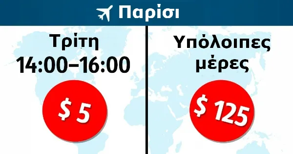 • Κάθε Τρίτη και Τετάρτη (απόγευμα) εμφανίζονται οι χαμηλότερες τιμές για πτήσεις.