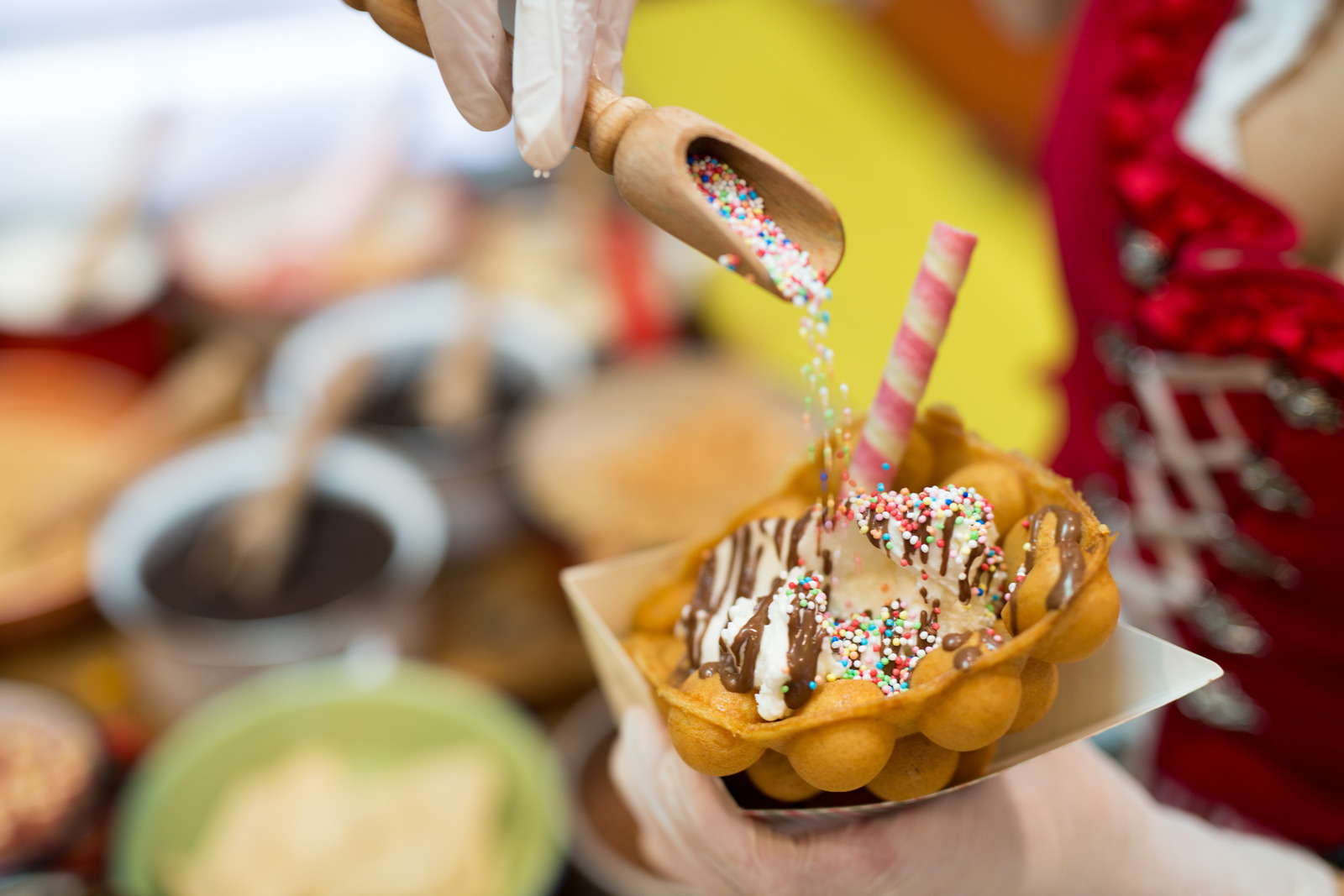 Γρανίτες, βάφλες που τυλίγονται σαν χωνάκι και μέσα σερβίρουν παγωτό μηχανής ή gelato, το περίφημο “chimney cake” ή αλλιώς κύλινδρος σφολιάτας πασπαλισμένος με ζάχαρη και κανέλα, που επίσης μπορεί να σερβιριστεί γεμιστός με παγωτό και διάφορα toppings, παγωτό με μαλλί της γριάς που φτιάχνεται στο Λονδίνο και σίγουρα δεν έχεις ξαναδοκιμάσει – δεν υπάρχει περίπτωση να περάσεις απ’ έξω και να μη μπεις. Λίγο για να δοκιμάσεις κάτι που θα σου τραβήξει την προσοχή, λίγο για να αφεθείς στη μαγεία του χώρου, λίγο για να θαυμάσεις το “σπίτι της μάγισσας” που εξωτερικά μοιάζει φτιαγμένο από μπισκότα, σημασία έχει ότι είναι από το πιο «γλυκά» μαγαζιά που μπορεί να επισκεφτεί κάποιος.