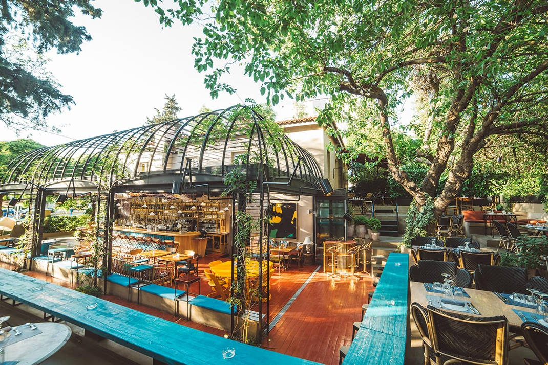 Με φόντο έναν καταπράσινο κήπο με δέντρα που… έχουν ρίζες στο 1890A και εκατό διαφορετικά λουλούδια και φυτά (σσ. Η επιμέλεια του κήπου έχει την υπογραφή του αρχιτέκτονος Κάρολου Χανικιάν) μπορείς να απολαύσεις απίθανες γεύσεις με την αίσθηση ότι βρίσκεσαι μακριά από την Αθήνα.