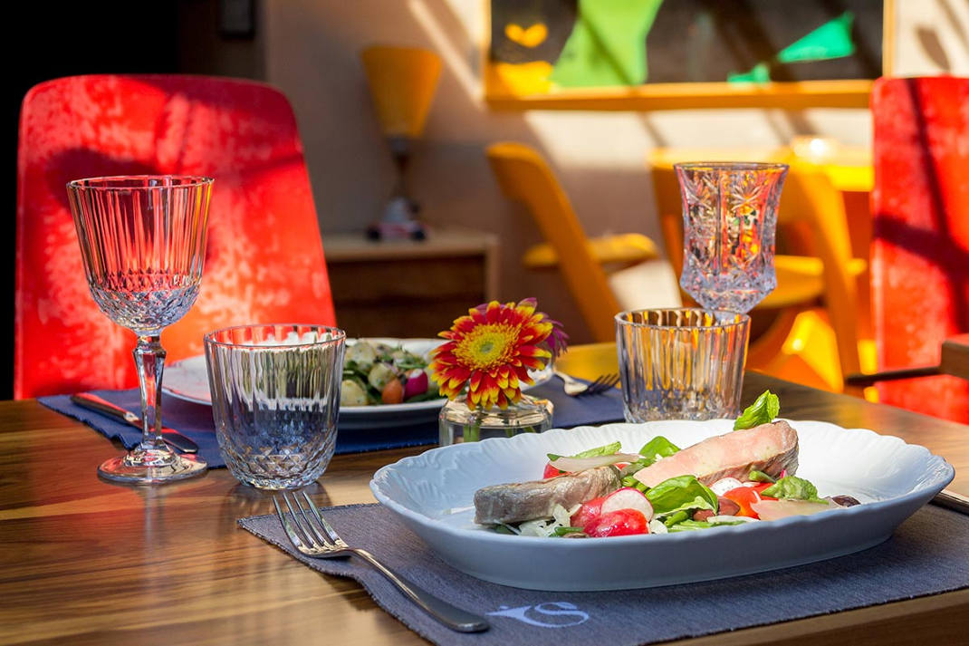 Tα πιάτα έχουν την υπογραφή του καταξιωμένου chef Δημήτρη Δημητριάδη. Μεταξύ άλλων μπορείς να δοκιμάσεις γιουβέτσι με γαρίδες, μάραθο, λεμόνι, άνηθο και πιπεριά Φλωρίνης, ένα «διαφορετικό παστίτσιο» με φρέσκο κανελόνι, Bolognese χταπόδι, φύκια wakame και αφράτη φάβα Σαντορίνης, τόνος σχάρας με φασολάκια, τοματίνια, φινόκιο, ελιές και λάδι αρωματισμένο με λεμόνι και σκόρδο, ravioli με ανθότυρο και σάλτσα με τυρί βολάκι και φασκόμηλο, μπούτι κοτόπουλο saute με χειροποίητες χυλοπίτες, φρέσκα μανιτάρια και ρόκα, χοιρινό καρέ saute με πουρέ ριγανάτης πατάτας, ψητά κολοκυθάκια, φέτα και μουστάρδα, black angus tri tip με σπανάκι baby, vinaigrette μανιτάρια και sauce από λιαστό κρασί, σαλάτα με κινόα, σπανάκι, σπαράγγια, βιολογικό αυγό croustillant και κρέμα γραβιέρας Νάξου, πράσινη σαλάτα με συκομαΐδα, κατσικίσιο τυρί, αχλάδι και vinaigrette τσίπουρου.