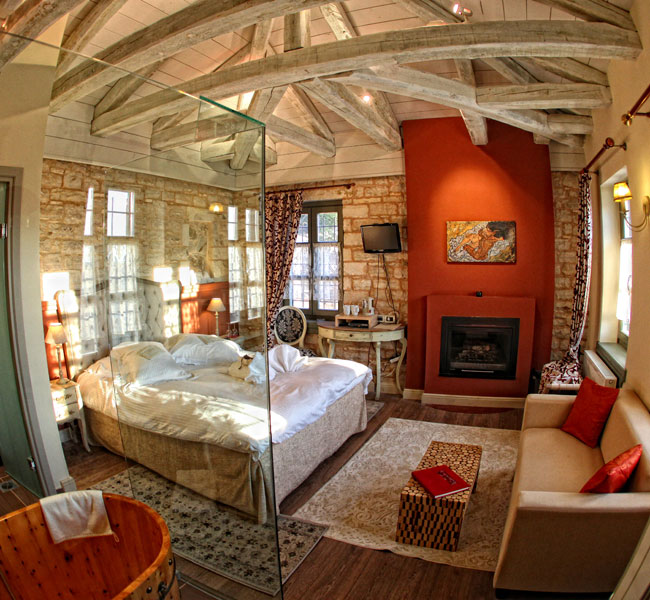 Τα δύο κτίρια είναι φτιαγμένα από πέτρα και ξύλο, ενώ σε κάθε δωμάτιο ο επισκέπτης θα βρει διάφορες αντίκες με την vintage διακόσμηση να είναι ακόμη ένα θετικό του boutique hotel.