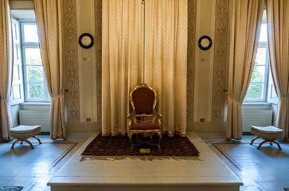 Η αίθουσα του θρόνου. Ελλείψει θρόνου, ο Οθωνας καθόταν προσωρινά σε πολυθρόνα.