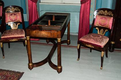 Σαλόνι με τραπέζι χαρτοπαιγνίου στην οικία Κωνσταντίνου Βούρου.