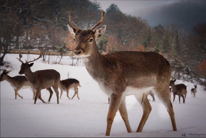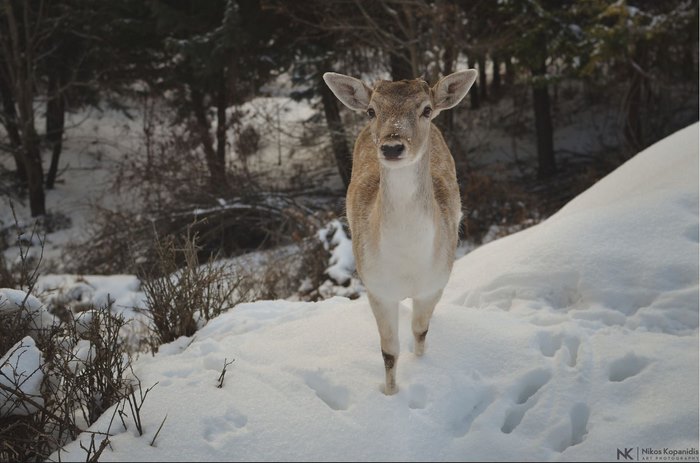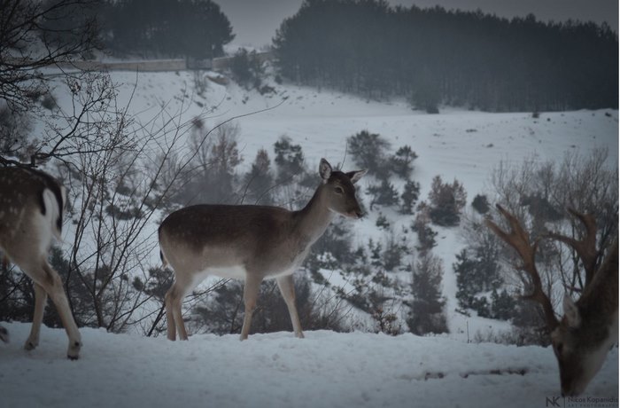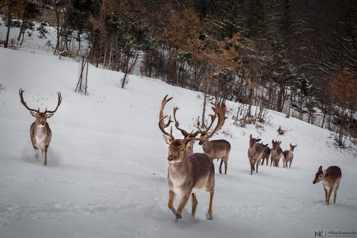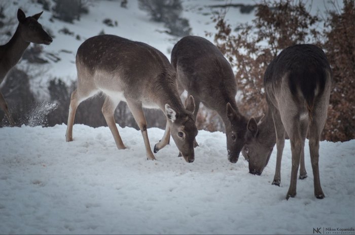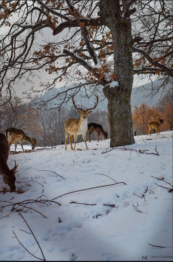 Ο τυχερός Νίκος Κοπανίδης βρέθηκε στο χιονισμένο πάρκο του Άγιου Παντελεήμονα, στο χωριό Άγιος Δημήτριος Κοζάνης, και φωτογράφισε πανέμορφα ζαρκάδια να βολτάρουν αμέριμνα στο χιονισμένο τοπίο.