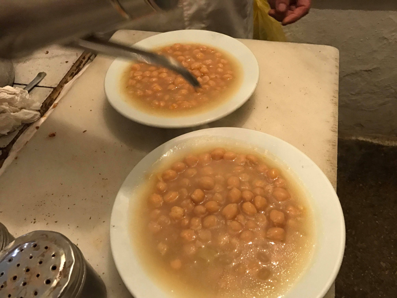 Εκεί θα βρείς όμως και μοδάτες νεαρόφατσες, που μπλέκονται με γκαλερίστες, ηθοποιούς αλλά και κουστουμαρισμένους επιχειρηματίες που επιστρέφουν στο γραφείο ποτισμένοι απ’ την τσίκνα. Το μενού σήμερα είχε φασολάδα γίγαντες, ρεβίθια, φάβα, χόρτα, σαρδελίτσες και κοφτό μακαρονάκι με σουπιά.