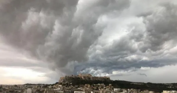 Με ηφαίστειο που μόλις εξερράγη μοιάζει η Ακρόπολη σε μία εντυπωσιακή φωτογραφία από την κακοκαιρία που έπληξε την Αθήνα στις 4 Νοεμβρίου.