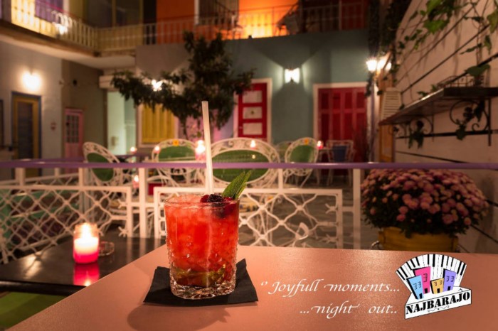 Το ανακαινισμένο εσωτερικό του μαγαζιού έχει τη δική του χάρη. Τον χειμώνα που ο καιρός δεν επιτρέπει να καθίσεις στην αυλή, απολαμβάνεις την vintage αισθητική του και την παρείστικη ατμόσφαιρά του. Τα κοκτέιλ έχουν την υπογραφή του «μετρ» του είδους, Γιώργου Ράλλη. Στο Najbarajo, πέρα από τα δροσιστικά ποτά, μπορείς να απολαύσεις το γλυκάκι σου ή όποιο σνακ είναι της αρεσκείας σου (ακόμα και πίτσα!).