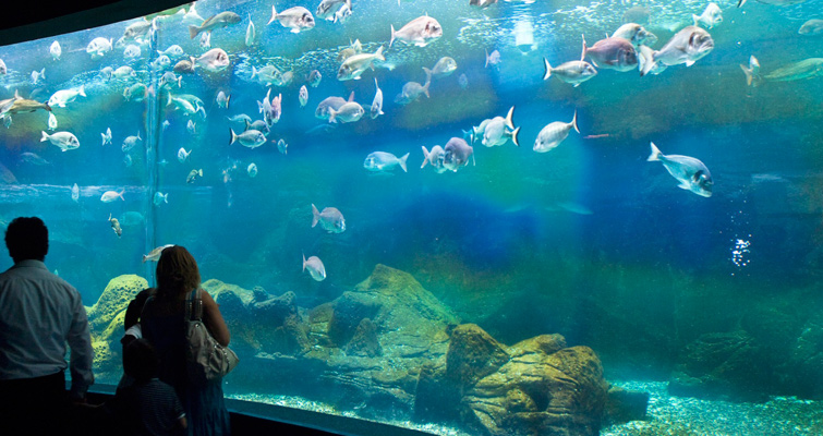 Μέσα από 60 ενυδρεία διαφορετικών μεγεθών οι επισκέπτες έχουν τη δυνατότητα να ανακαλύψουν και να θαυμάσουν τη θαλάσσια σκηνογραφία που ξετυλίγεται μπροστά τους.