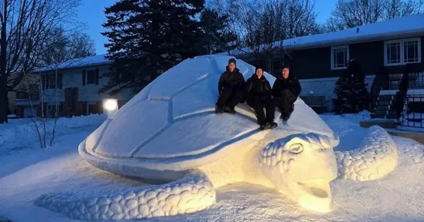 Κάθε φορά που χιονίζει, τρία αδέλφια από τη Μινεσότα δημιουργούν την αυλή του σπιτιού τους όμορφα και πραγματικά τεράστια γλυπτά από χιόνι!
