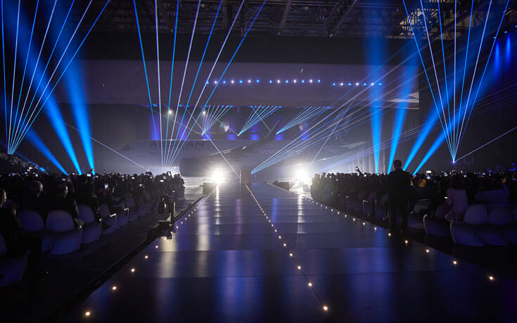 Στη διάρκεια της τελετής, ένα εντυπωσιακό βίντεο παρουσίασης προβλήθηκε σε ένα μεγάλο video wall, μετά τις ομιλίες του Διευθύνοντα Συμβούλου Δημήτρη Γερογιάννη και του προέδρου Ευτύχιου Βασιλάκη. Όταν η προβολή του βίντεο ολοκληρώθηκε, με το νέο αεροπλάνο στην οθόνη, το video wall απομακρύνθηκε και εμφανίστηκε ακριβώς από πίσω το αεροπλάνο.