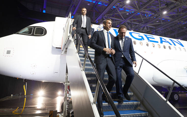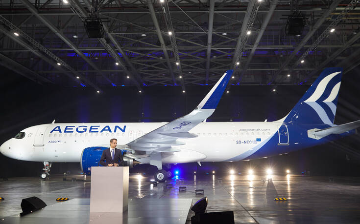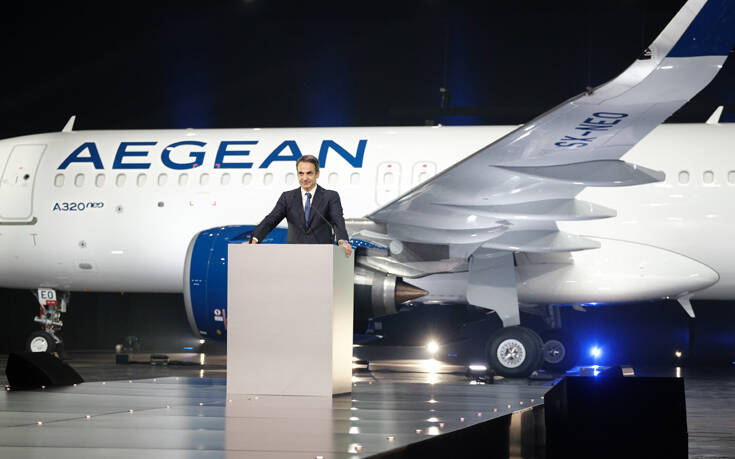Στην τελετή παραλαβής των πρώτων τριών νέων αεροσκαφών από συνολικά 46 Airbus της Aegean, στην Τεχνική βάση της Aegean (Διεθνής Αερολιμένας Αθηνών) παραβρέθηκε και ο πρωθυπουργός Κυριάκος Μητσοτάκης, ο οποίος απηύθυνε χαιρετισμό.