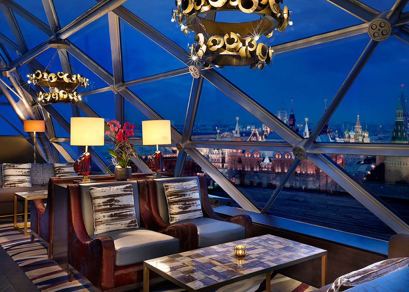 Εδώ, οι πιο καλοντυμένοι ρώσοι και businessmen που έχουν ξεμείνει στην πόλη για δουλειές κάνουν πούρα, καταναλώνουν χρυσά μπουκάλια βότκας και αγνοούν την ομορφιά που απλώνεται πέρα από τις τζαμαρίες και τις design καρέκλες του bar. Εσείς μη κάνετε, το ίδιο λάθος.