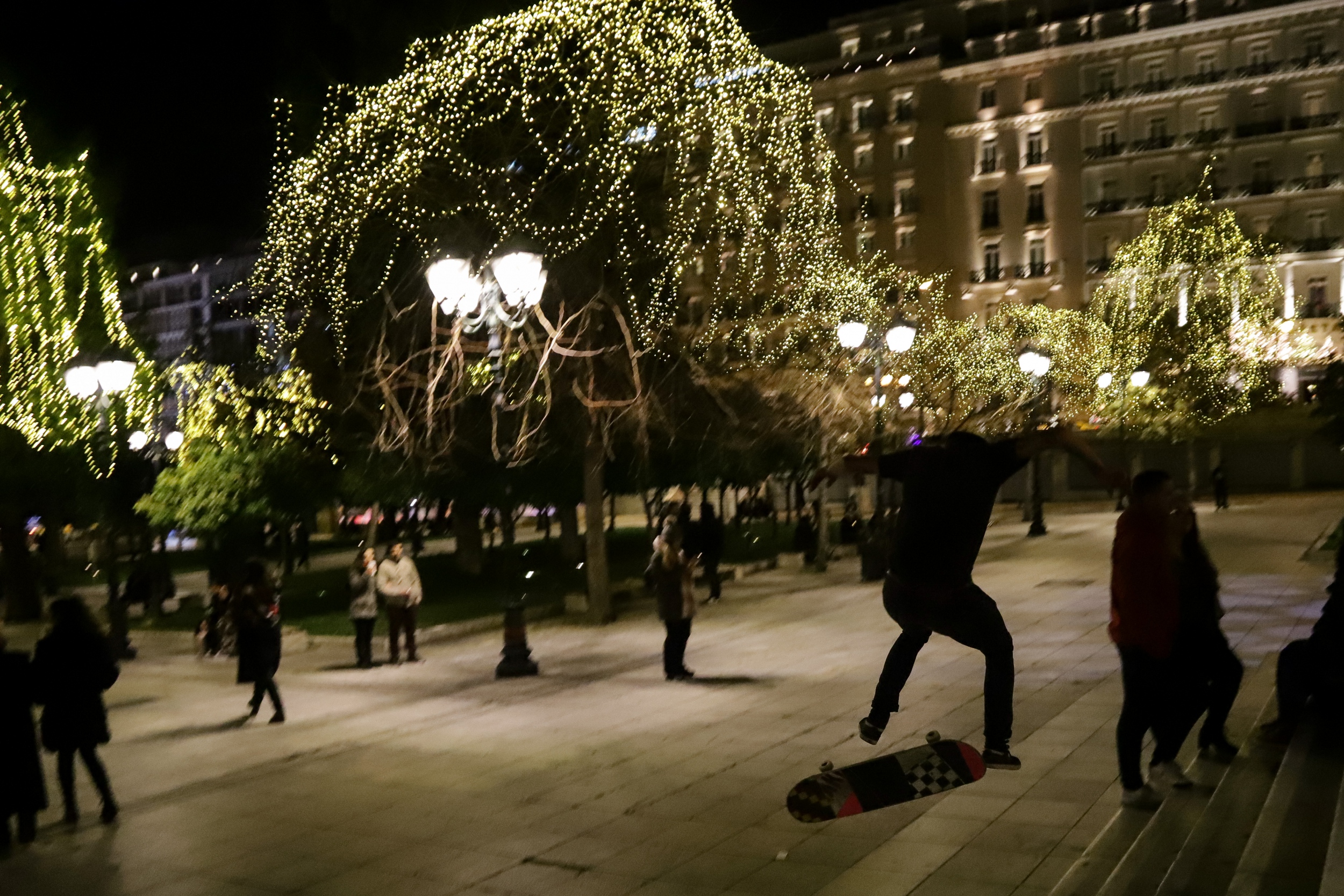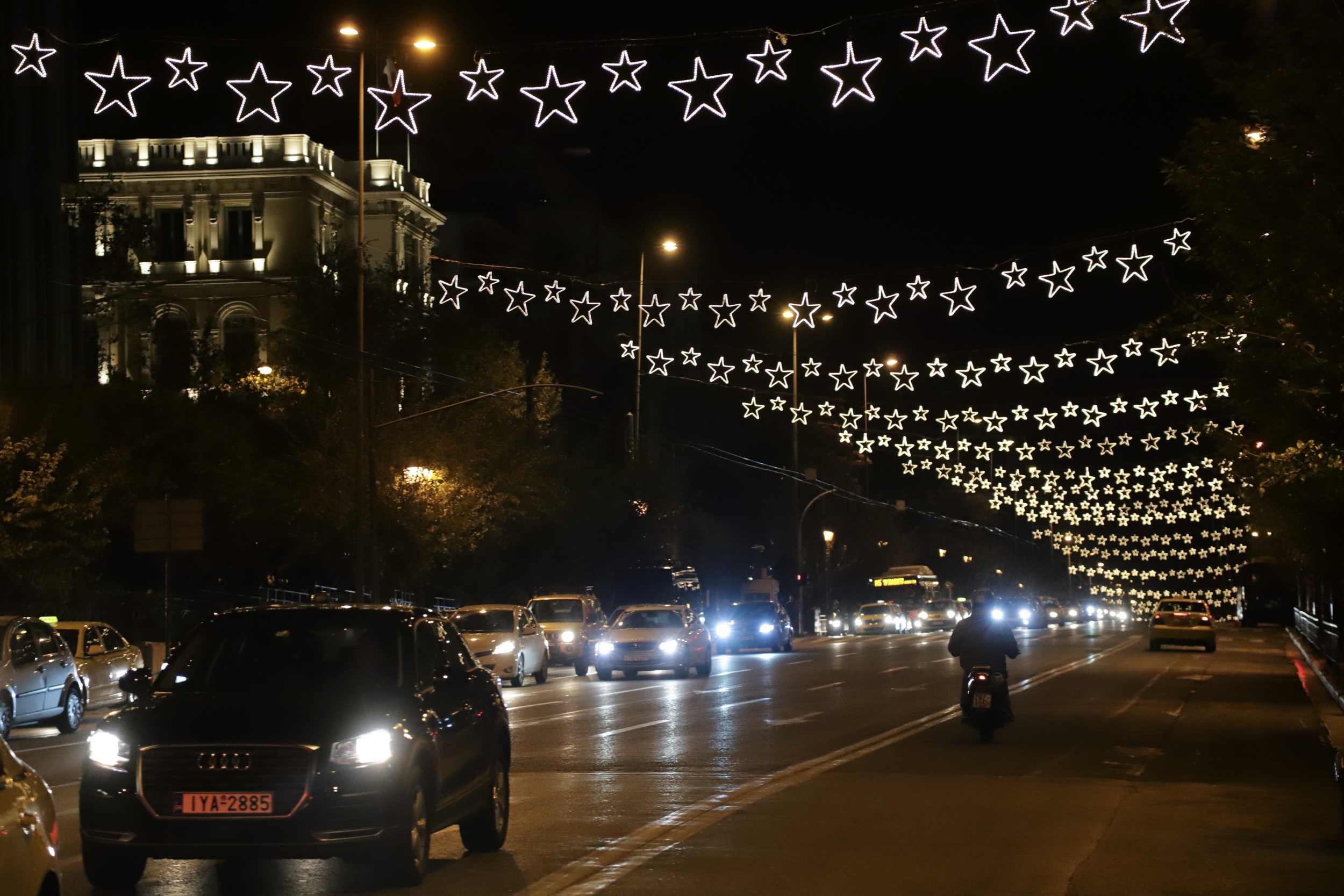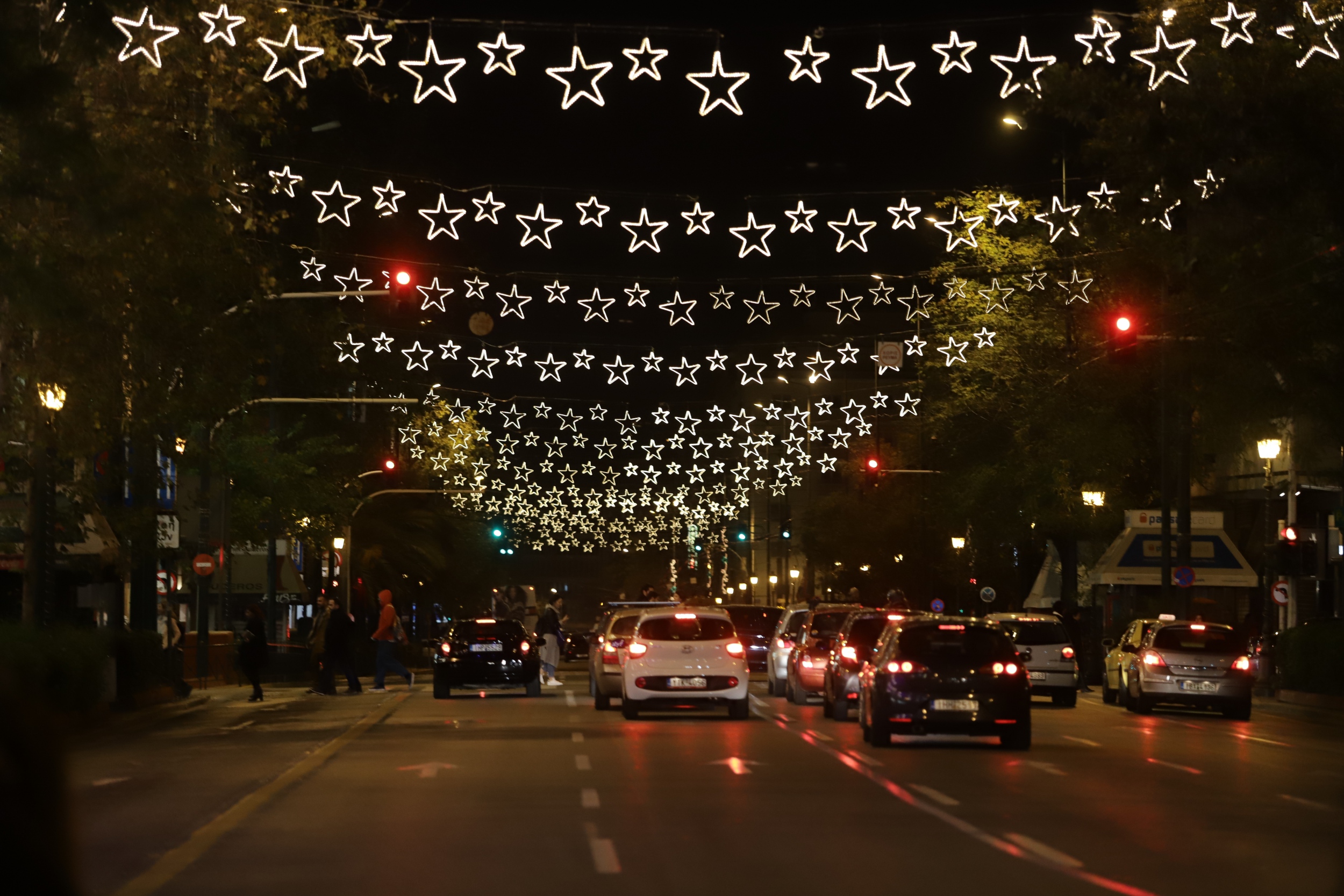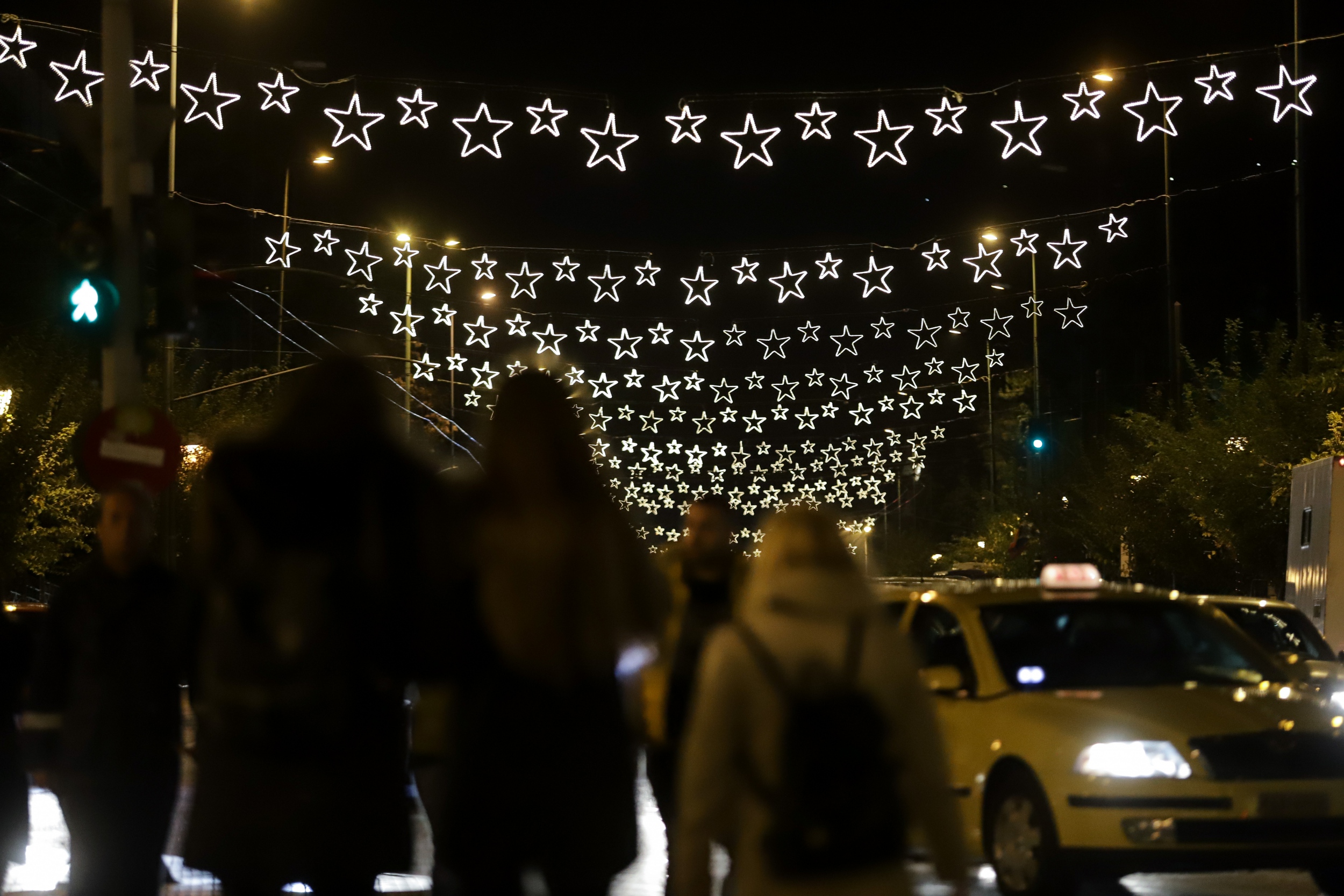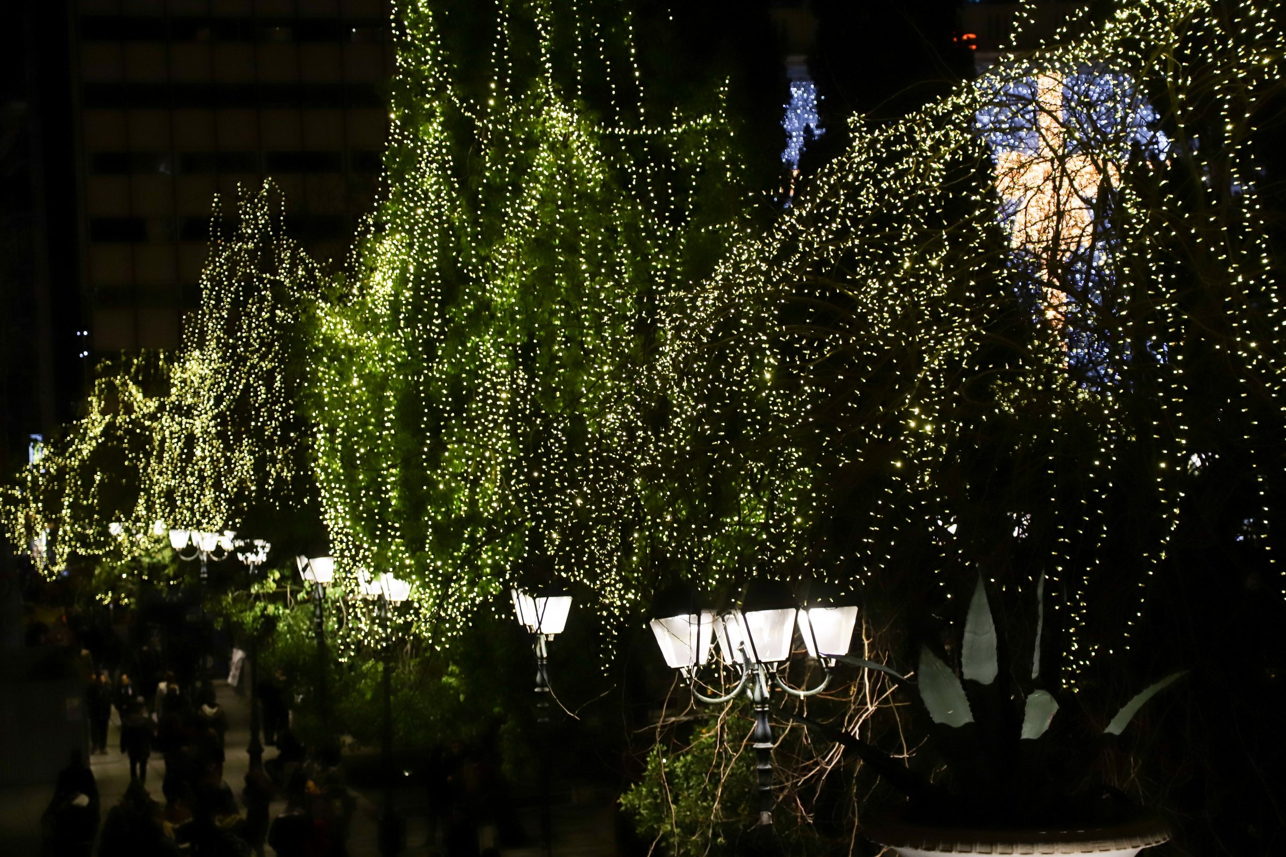 Mπορεί ακόμη το δέντρο στο Σύνταγμα να μην είναι έτοιμο, ωστόσο η Αθήνα έχει εισέλθει για τα καλά σε ρυθμούς Χριστουγέννων και τη νύχτα η πόλη έχει μεταμορφωθεί.
