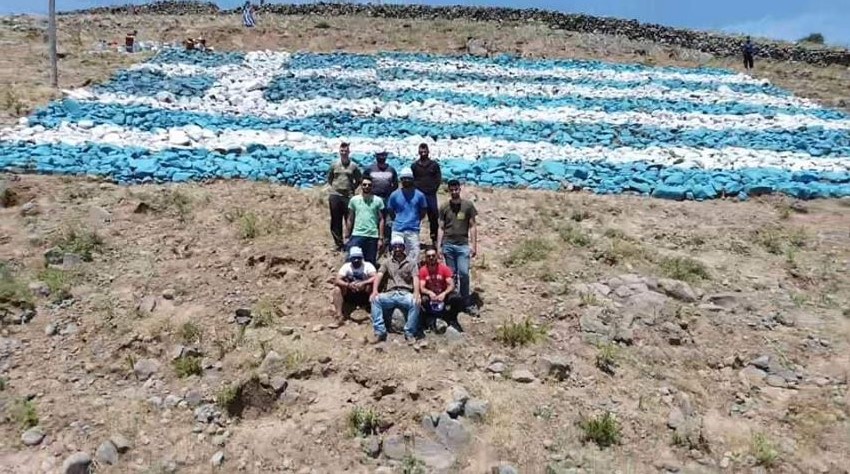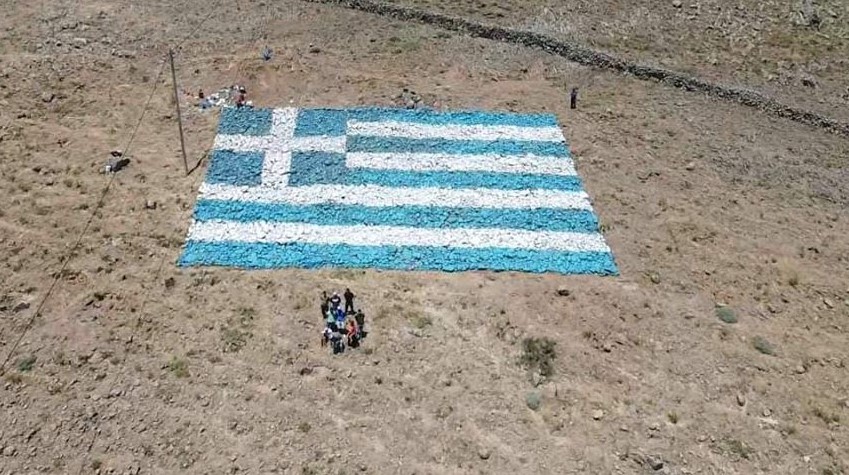 Ελληνική σημαία 500 τ.μ. με πέτρες στην Λέσβο