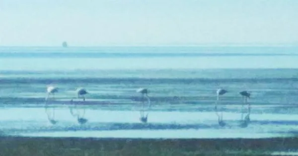 Η όμορφη εικόνα με τα εντυπωσιακά αυτά πουλιά, δεν είναι σπάνια στις ακτές του Μαλιακού, όπου βρίσκουν καταφύγιο, λόγω υψηλότερων θερμοκρασιών και τροφής.