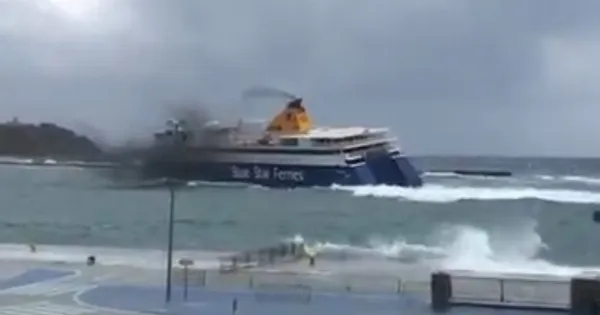 Την εντυπωσιακή μανούβρα του Blue Star Naxos έξω από το λιμάνι της Τήνου αποτυπώνει βίντεο που τράβηξαν οι χρήστες Μηνάς Ακεψιμαίδης και Γιώργος Νάζος δημοσίευσε το Forecast Weather Greece στη σελίδα του στο Facebook.