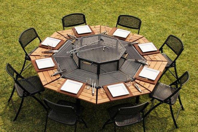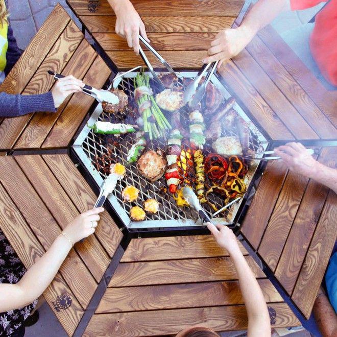 Η ιδέα και μόνο μοιάζει εντυπωσιακή. Η καρδιά του τραπεζιού γεμίζει με κάρβουνα και μόλις αυτά κάψουν καλά, μπορούν όλοι να καθίσουν στη θέση τους και να ψήσουν όπως επιθυμούν τα εκλεκτά τους κρεατικά και λαχανικά.