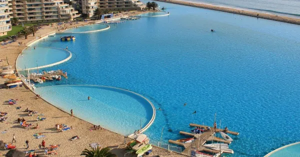 μεγαλύτερη πισίνα στον κόσμο βρίσκεται στο Algarrobo της Χιλής. Το μήκος της ξεπερνά το ένα χιλιόμετρο, ενώ συνολικά καλύπτει μια έκταση 77.000 τ.μ. Η χωρητικότητα της πισίνας φτάνει τα δυόμισι εκατομμύρια λίτρα νερού, το οποίο έρχεται κατευθείαν από τον Ειρηνικό Ωκεανό, αφού πρώτα φυσικά φιλτραριστεί και καθαριστεί.