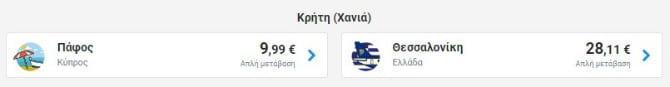 Οι κάτοικοι των Χανίων μπορούν να ταξιδέψουν σε Πάφο και Θεσσαλονίκη με 9,99€ και 28,11€ αντίστοιχα.