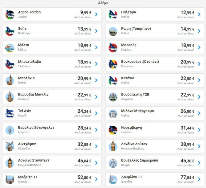Ταξιδέψτε από την Αθήνα στην Σόφια με λιγότερα από 14€, στην Βαρσοβία με 22,99€, στο Βουκουρέστι με 20,99€, ακόμα και στο Λονδίνο με 45€.
