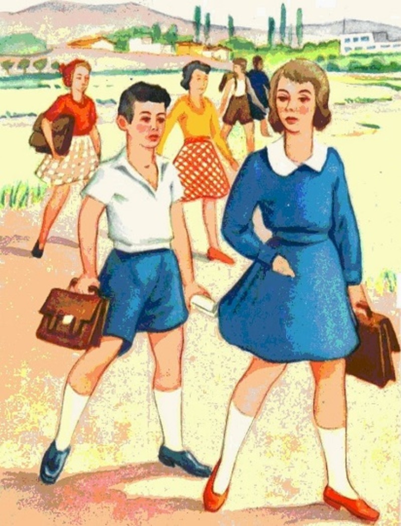 Τα σχολεία ήταν ανέκαθεν πασαρέλες –μην γελιόμαστε. Ακόμη και τότε που ήμασταν σε «θηλέων» και δεν υπήρχε ο πειρασμός του αρσενικού στο διπλανό θρανίο αλλά συνήθως έξω από την πόρτα του σχολείου, ακόμη και τότε , στα χρόνια της «ισοπεδωτικής» σχολικής ποδιάς, βρίσκαμε τρόπους να κάνουμε τα καλλιστεία της εποχής. Υπήρχε κι ένα μάθημα –στα θηλέων- που το λέγανε «οικοκυρικά» που μας εισήγαγε στις βασικές ενότητες του κουτσομπολιού περί νοικοκυροσύνης. Οι μανάδες συνιστούσαν να κάνουμε φιλίες με κορίτσια που είχαν καλοσιδερωμένους και καθαρούς τους άσπρους γιακάδες και αναμετρούνταν μεταξύ τους σε δεξιότητες κρυφοβελονιάς για να τον ράψουν επάνω στην σχολική ποδιά.