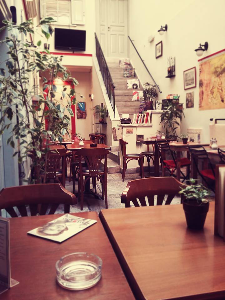 Από τα κρυμμένα μυστικά του κέντρου – που σημαίνει ότι δεν θα το βρεις να πήζει από κόσμο, που σημαίνει ότι θα έχεις την ησυχία σου. Έχει μια υπέροχη αυλή που δεν μοιάζει σε καμιά άλλη, αλλά και πολύ όμορφο εσωτερικό χώρο. Δεν είναι απίθανο να πετύχεις παρουσιάσεις βιβλίων ή κάποιο live τα απογευματοβραδάκια, επίσης. Θα σου πούμε και ότι, αν αγαπάς την σοκολάτα, εδώ αξίζει να παραγγείλεις, είναι εκπληκτική.