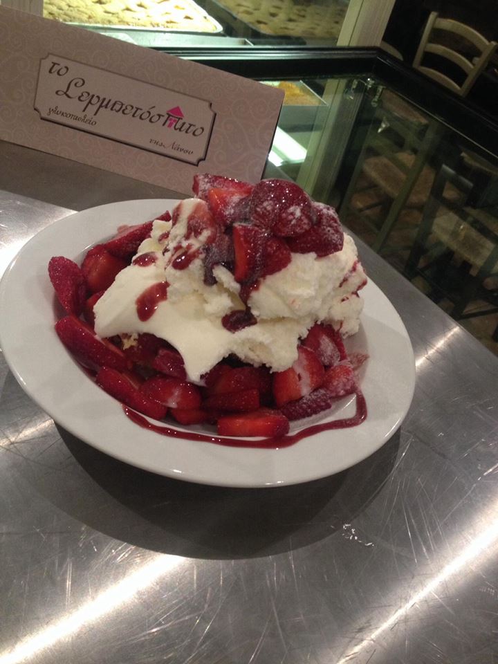 Υπάρχει ένα πολύ δροσερό σορμπέ φράουλα για τη φραουλόπιτα και μια σοκολάτα πραλίνα, που την εισήγαγε πειραματικά αυτό το καλοκαίρι.
