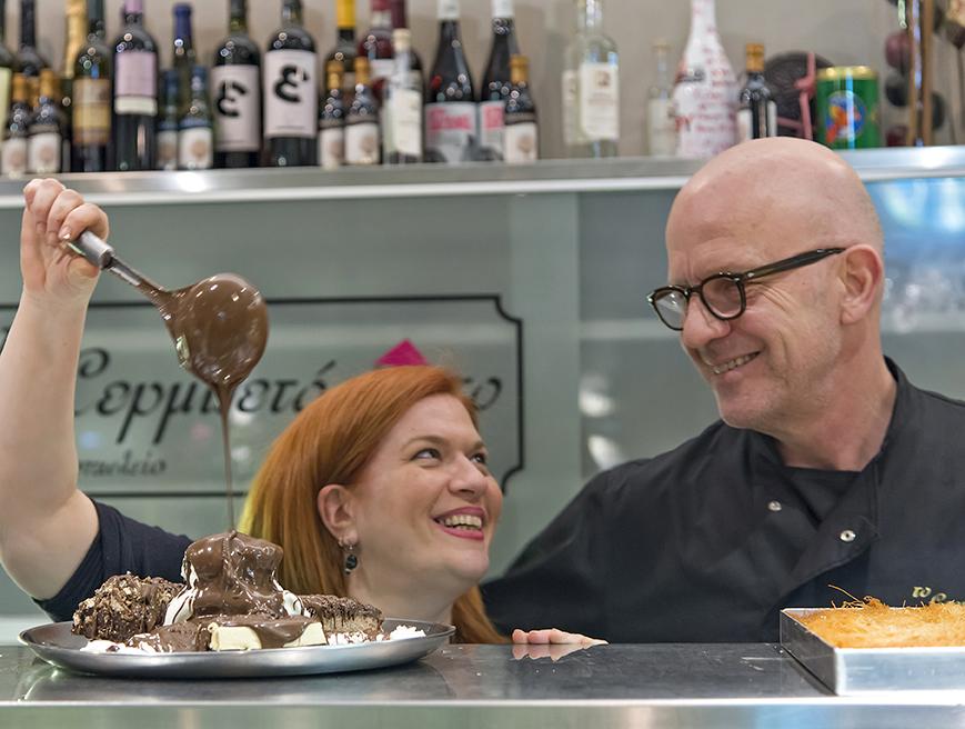 Θα σας εξηγήσουν με λεπτομέρεια κάθε γλυκό, αν θέλετε, και θα σας κεράσουν λικέρ μαστίχα. Αν αποφασίσετε να πάρετε και για το σπίτι, περιμένοντας στην ουρά μπορεί να δοκιμάσετε ζεστή αυθεντική σοκολάτα και να απολαύσετε λουκουμάκι Τσάρλεστον, εκείνα τα ωραία ροζ ζαχαρωτά με άρωμα τριαντάφυλλο που τρώγαμε όταν ήμασταν μικροί.