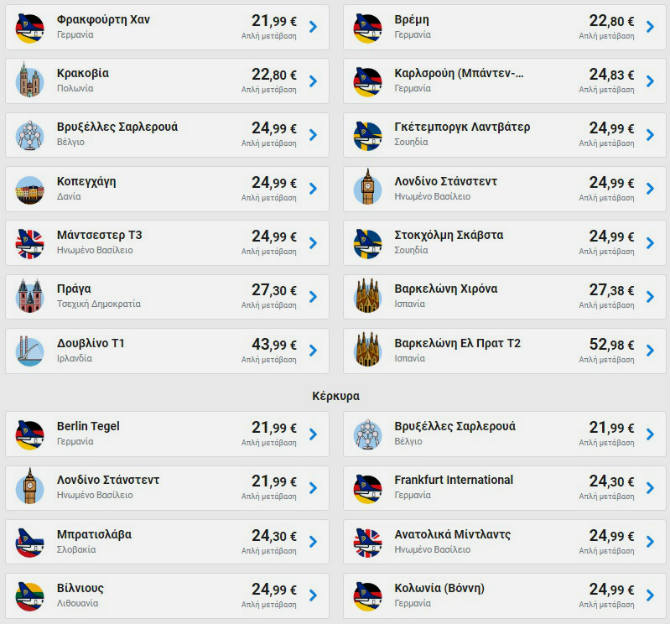 Πολλοί είναι οι προορισμοί που έχουν προστεθεί από την Κέρκυρα. Κλείστε εισιτήρια για Βερολίνο και Λονδίνο από 21,99€, για Μάντσεστερ από 24,99€ και για Λονδίνο από 28,99€.