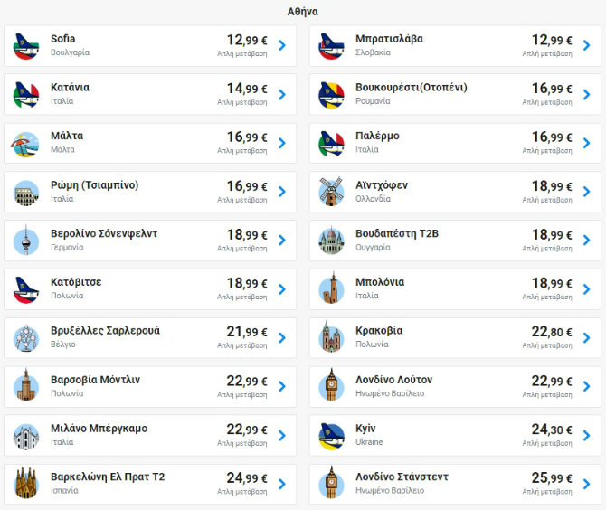 Ανάμεσα στην προσφορά είναι και κορυφαίοι προορισμοί, για πτήσεις από Αθήνα η Ρώμη έχει εισιτήρια από 16,99€, η Βουδαπέστη από 18,99€, το Λονδίνο από 25,99€.