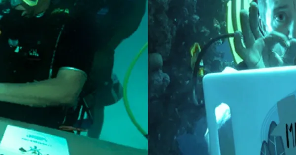 Ακόμα και μέσα στο νερό ο Σπύρος Παπαδόπουλος θα βρίσκει τους λουόμενους και θα τους μεταφέρει το μήνυμα το οποίο δεν αλλάζει. Μένουμε Σπίτι.