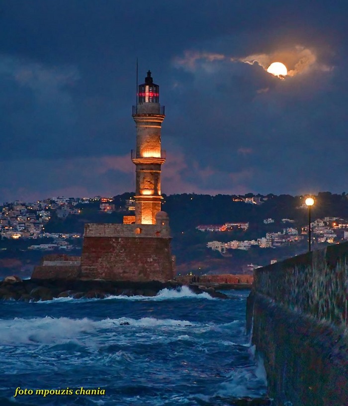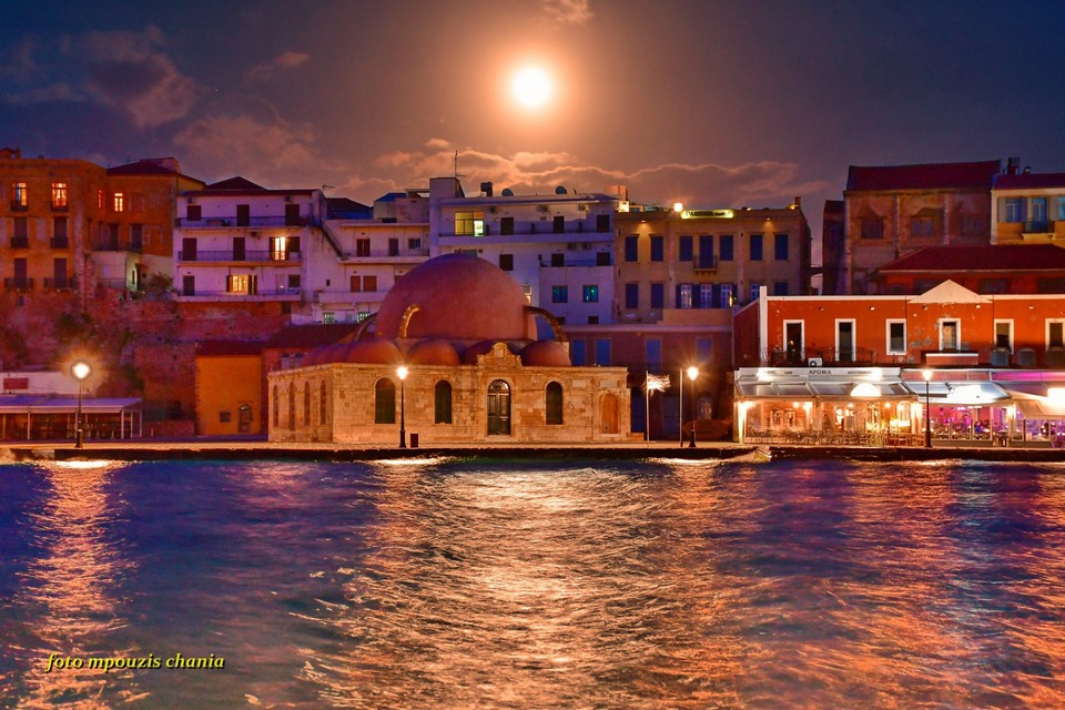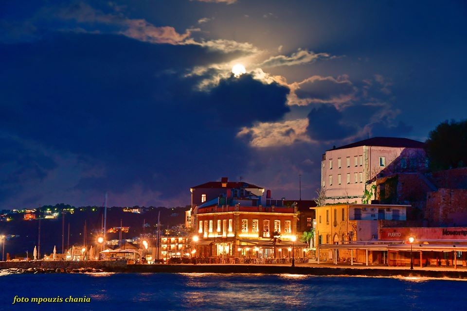 Περίπου στις 20.00 η ελλειπτική τροχιά του έφερε το φεγγάρι πιο κοντά στη Γη παρά τη συννεφιά το εντυπωσιακό φεγγάρι, μεγάλο και λαμπερό, φώτισε κάθε γωνιά του Ενετικού Λιμανικού των Χανίων με τη λάμψη του να σβήνει στο καθρέφτισμα των νερών.