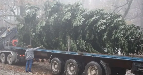 Το έλατο έφτασε στην πόλη από τον Ταξιάρχη Χαλκιδικής και θα φωτιστεί στο πλαίσιο εκδηλώσεων στις 7 Δεκεμβρίου.