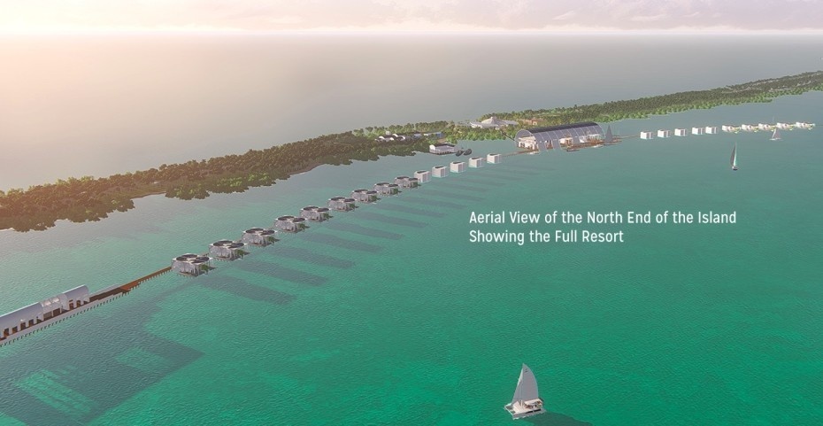 Το φιλόδοξο έργο δείχνει μια κυρτή πλατφόρμα με πολυτελή σπίτια και υποβρύχια θα υπάρχουν τεχνητοί ύφαλοι και καταφύγια ψαριών.