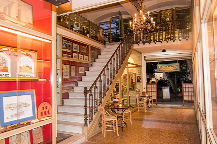 Αναρωτιέσαι αν βρίσκεσαι σε μουσείο, ή σε καφέ- εστιατόριο ή σε πολιτιστικό πολυχώρο. Λιθόστρωτο, μαρμάρινες σκάλες, παλιές λιθογραφίες, γκραβούρες, πίνακες,εικονίσματα, πινακωτές ρόκες και γκλίτσες, ιστορικά έγγραφα και άλλοι αναρίθμητοι θησαυροί της ελληνικής παράδοσης διακοσμούν το χώρο.