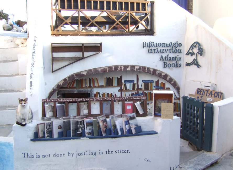 Το βιβλιοπωλείο, που άνοιξαν δυο φίλοι απ’ τη Β. Αμερική το 2004 στη Σαντορίνη, πέρασε από σαράντα κύματα και κατέληξε να θεωρείται ένα απ’ τα καλύτερα του κόσμου σύμφωνα και με το Guardian.