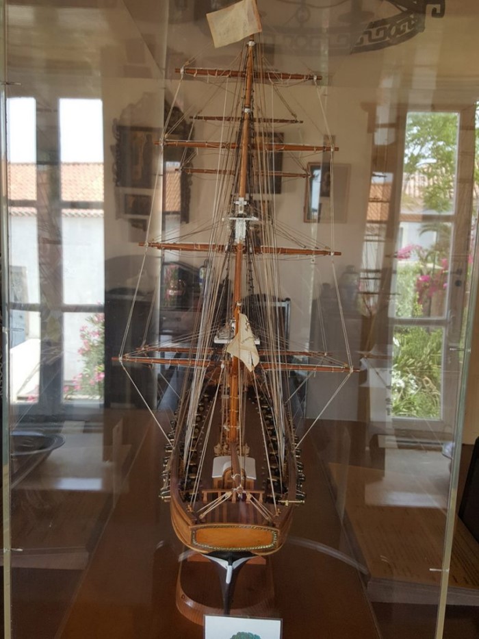 Στη βιβλιοθήκη, μεταξύ σπανίων βιβλίων, η χρυσοκέντητη μαντίλα της καπετάνισσας. Επίσης, ένα μενταγιόν της, αναμνηστικά μετάλλια, ωραιότατες πορσελάνες και συλλογή από αρχαίους λύχνους. Ανηρτημένη στον τοίχο βρίσκεται η τουρκική άδεια (φιρμάνι του Σουλτάνου) της κατασκευής του πλοίου «Αγαμέμνονα», με το σχέδιο του στην πίσω πλευρά.