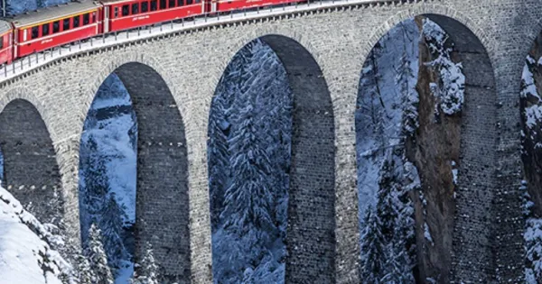 Το τρένο που περνά από 55 τούνελ και 196 γέφυρες μέσα στις χιονισμένες Άλπεις
