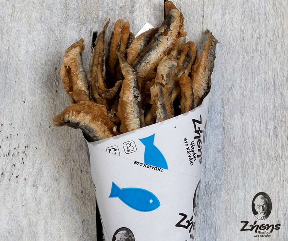 Ο ιδιοκτήτης του, ο Ζήσης Παπαζήσης, που κληρονόμησε το πάθος για την κουζίνα και τα θαλασσινά από τον παππού του, είχε την καταπληκτική ιδέα να βάλει τα ψαράκια σε χωνάκια και να προσφέρει στους Αθηναίους μια εύκολη και ταυτόχρονα πολύ υγιεινή λύση για γρήγορο φαγητό.