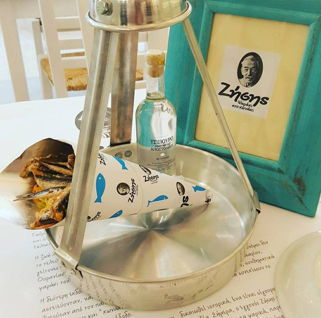 Αν παρατηρήσετε τα σουπλά του μαγαζιού, θα διαβάσετε πάνω τους την ιστορία του παππού Ζήση και της γιαγιάς Ουρανίας που, στο δικό τους κατάστημα στο Βόλο πίσω από την ψαραγορά, έφτιαξαν ένα γαστρονομικό στέκι, για τους λάτρεις του τσίπουρου. Εκεί δημιουργούσαν μοναδικά βράδια και έστηναν τρελά γλέντια μετά μουσικής για τους πιστούς θαμώνες τους.