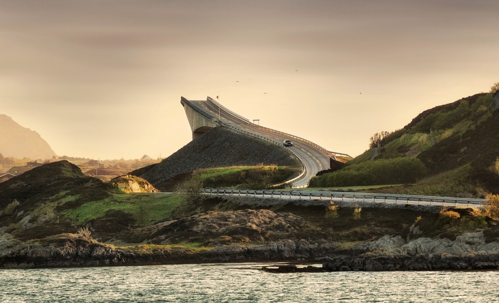 Η γέφυρα Storseisundet, μία γέφυρα που ενώνει το νησί Αβερόι με την περιοχή Μορε-ογκ-Ρούμσνταλ.
