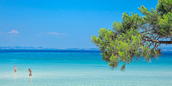 9. Η παραλία Βουρβουρού στη Χαλκιδική. Αν δεν ήταν το πεύκο δύσκολα θα την ξεχωρίζαμε από μια εξωτική παραλία του Άγιου Δομήνικου.