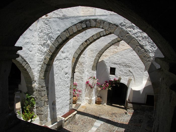 Η μονή, βασιλική σταυροπηγιακή, αφιερώθηκε στο Άγιο Ιωάννη το Θεολόγο ο οποίος εμπνεύσθηκε την πολυσυζητημένη “Αποκάλυψη” όταν εξόριστος εγκαταστάθηκε στην Πάτμο. Θα περιηγηθείτε –μαζί με δεκάδες ακόμη επισκέπτες- στους χώρους του και τελικά θα καταλήξετε στο εκκλησιαστικό μουσείο, ένα από τα σημαντικότερα του είδους στην Ελλάδα με σπάνια εκθέματα.
