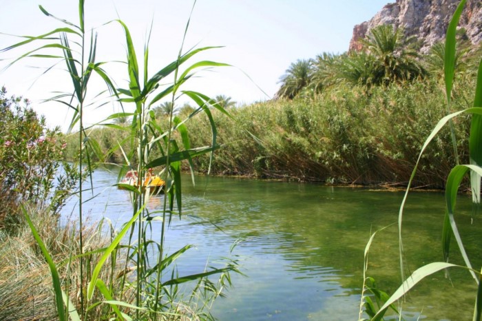 Οι φοίνικες στις όχθες του ποταμού προσφέρουν πλούσια σκιά και το έδαφος είναι ομαλό και με άμμο.