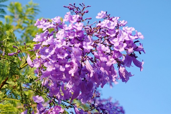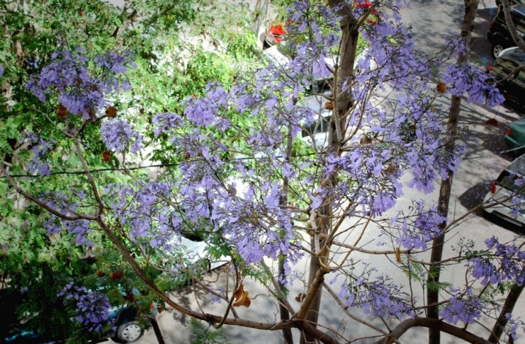 Αναμφίβολα, είναι ένα από τα ωραιότερα δέντρα του κόσμου. Πανύψηλη -φτάνει τα 15 με20 μέτρα πριν ξεδιπλώσει την ομπρέλα των κλαδιών της- και υπέρκομψη, η ωραία τζακαράντα ανθίζει ακόμη και σε στενάχωρους δρόμους της πόλης μας που δεν είναι το πιο κατάλληλο μέρος για να αναδειχτεί η ομορφιά της.