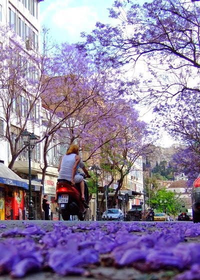 Δείτε αυτή τη δημοσίευση στο Instagram.#monastiraki #streetphotography #τζακαράντα #Jacaranda_mimosifolia ενδημικό φυτό της Νότιας Αμερικής, κάνει ολοένα και πιο αισθητή την παρουσία της στην Αθήνα. Ακόμη και αν δεν θυμόμαστε ποιο είναι αυτό το δέντρο, αρκεί να φέρουμε στον νου τις ολάνθιστες δενδροστοιχίες στο Ζάππειο ή στην #οδό_Αθηνάς όπου κάθε Ιούνιο (εποχή ανθοφορίας της τζακαράντας) γεμίζουν με μωβ άνθη. Από ψηλά, η εκπληκτική θέα της οδού Αθηνάς από τις κλιτύες της Ακροπόλεως (σαν μια βαθιά κοιλάδα στο σώμα της πόλης) γίνεται κάθε χρόνο τέτοια εποχή (τέλη Μαΐου και Ιούνιο) μία μωβ λεωφόρος μοναδικής ομορφιάς #in_athens #in_the_streets #may_2016 #streetphotography_color #streetphotographyincolors #streetphotography2016 #streetphoto_color #streetart #streetarteverywhere #urbanart & #blossom_trees #ig_greece #street_in_greece #thisisathens #athensland
