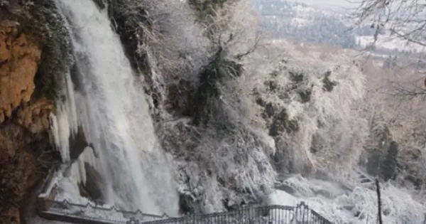 Οι καταρράκτες δημιουργήθηκαν τον 14ο αιώνα, όταν μετά κάποιο καιρικό ή γεωλογικό φαινόμενο (πιθανότατα σεισμός) άνοιξαν ρήγματα στον βράχο και απελευθερώθηκαν τα νερά του ποταμού που συγκρατούσε η λίμνη, που υπήρχε στα δυτικά της πόλης.