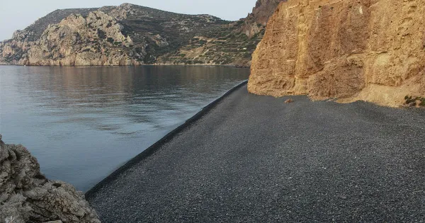 Η πρώτη είναι τα Μαύρα Βόλια ή Μαύρος Γιαλός και η δεύτερη το Φώκι. Κατά τους καλοκαιρινούς μήνες ο ήλιος δύει νωρίς στην παραλία, φωτίζοντας την με μαγικό τρόπο. Όσο και να μπείτε στον πειρασμό μην πάρετε μαζί σας βότσαλα από την παραλία διότι απαγορεύεται.