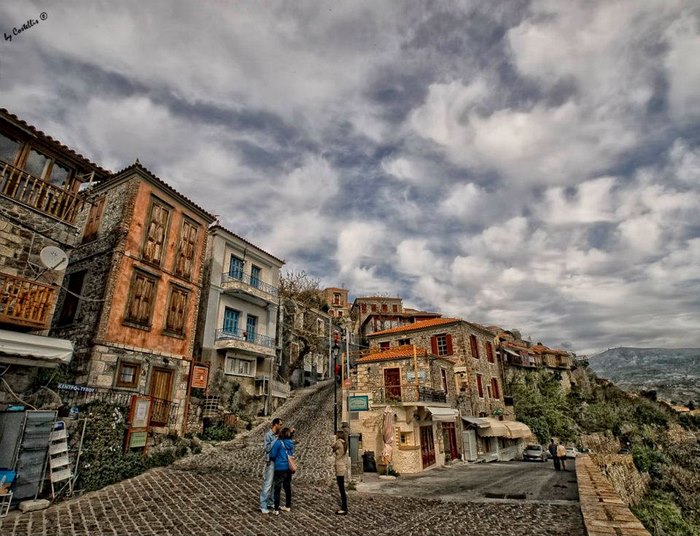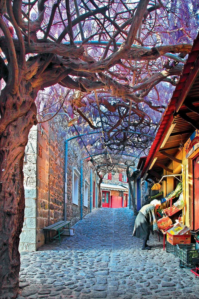 Ένα χωριό ολόκληρο φτιαγμένο από πέτρα και ξύλο, αυθεντικό, με το γενοβέζικο κάστρο του, με τα δαιδαλώδη καλντερίμια του, τα ολάνθιστα σαλκίμια να ρίχνουν πλούσια τη σκιά τους στους περαστικούς, με τις δεκάδες κρήνες του, με τη θέα στο πέλαγος..