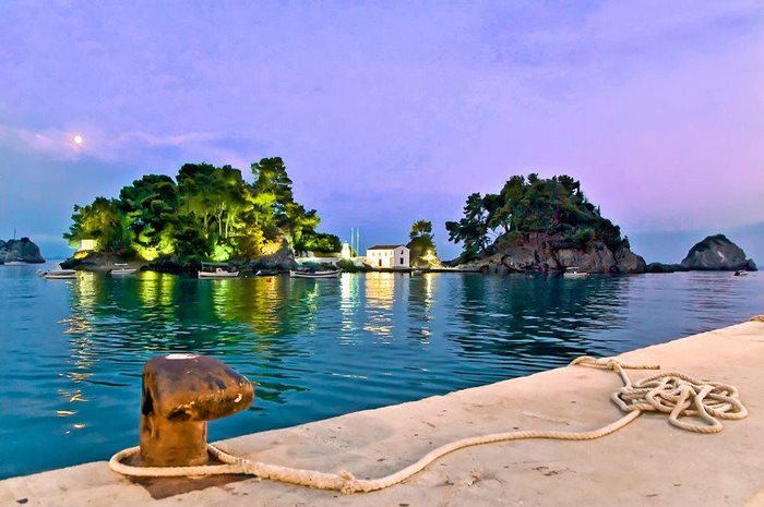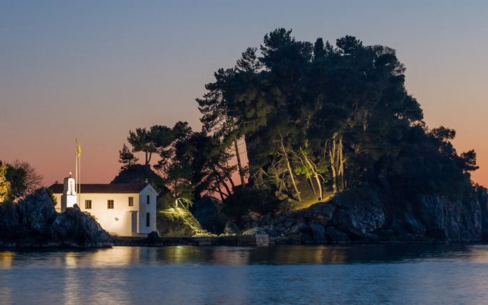 Τη νύχτα η εικόνα είναι ακόμα πιο γραφική με το φωταγωγημένο νησάκι να μαγνητίζει τα βλέμματα.